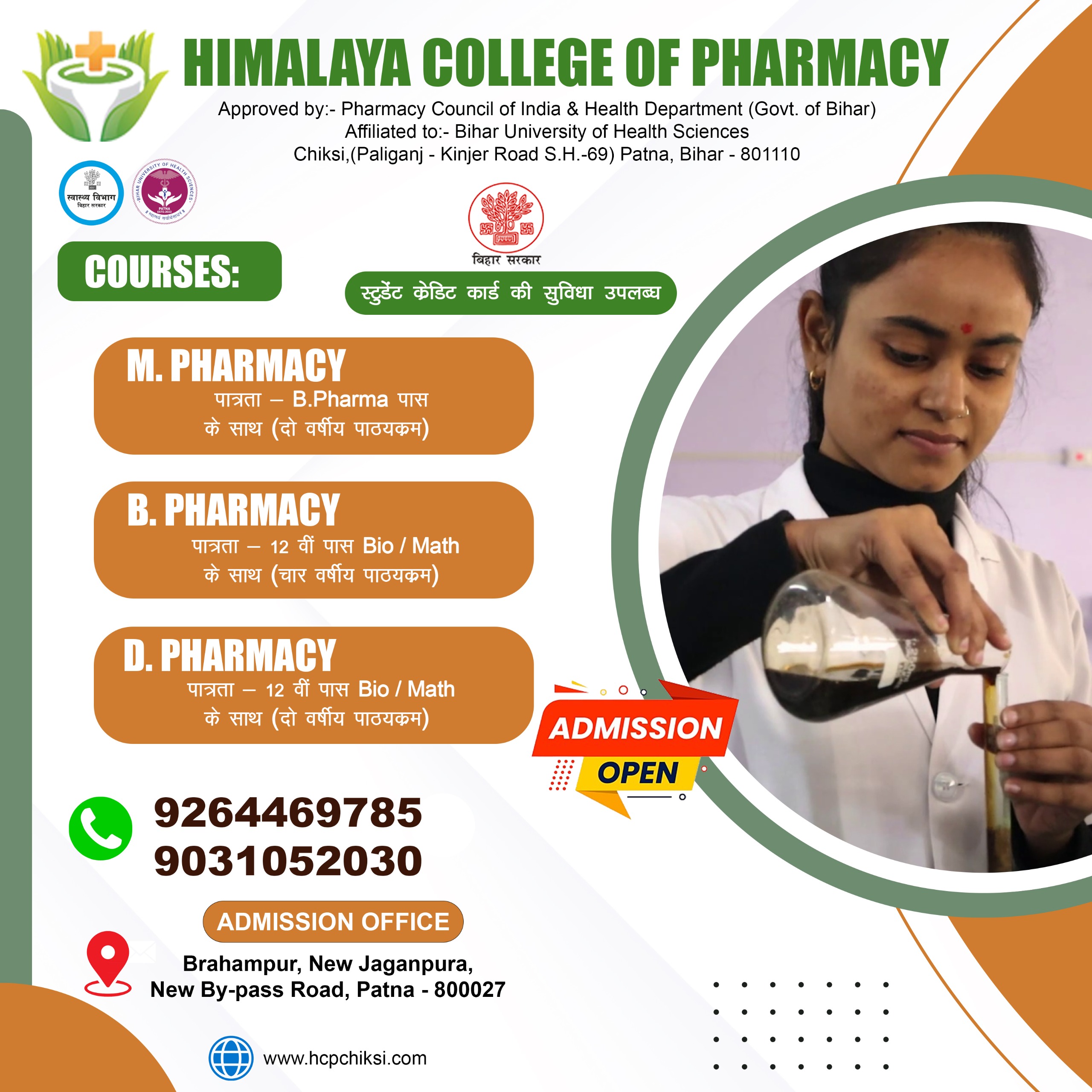 In addition, Himalaya College of Pharmacy is affiliated with the Health Department, Government of Bihar, reinforcing our commitment to public health and ensuring our students receive practical and up-to-date training in accordance with government healthcare standards